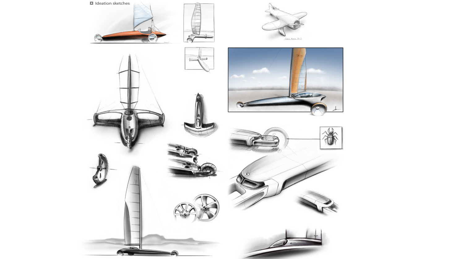 The challenge was to incorporate the style of a premium vehicle with the exclusiveness of a yacht, powered by an environmental force- wind. It is an interpretation of the idea through the eyes of a premium automobile brand like BMW, that has taken a path of creating environmentally- friendly cars, who carry a distinctive style and emotional character.